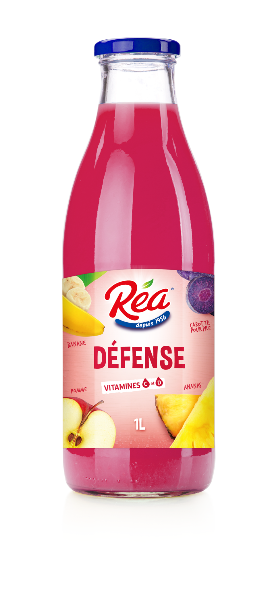 Réa Défense, un nectar de 3 fruits et légume, sans sucres ajoutés et enrichi en vitamines C et D pour boostez votre immunité.