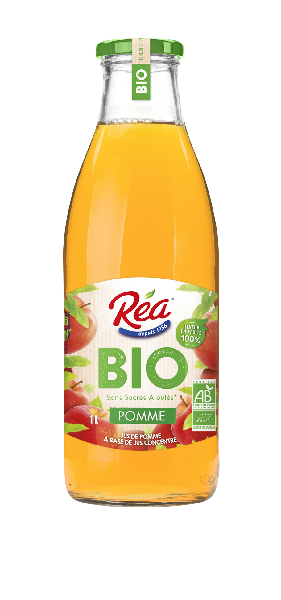 Le jus de pomme bio à base de jus concentré avec une teneur en fruit de 100% et sans sucres ajoutés, est délicieusement rafraîchissant et à consommer à tout moment de la journée.