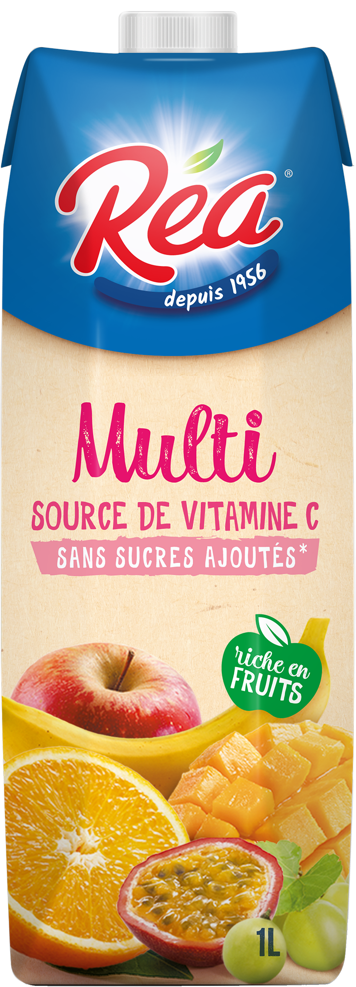 Riche en fruits et sans sucres ajoutés*, découvrez le goût de Réa MULTIFRUITS.